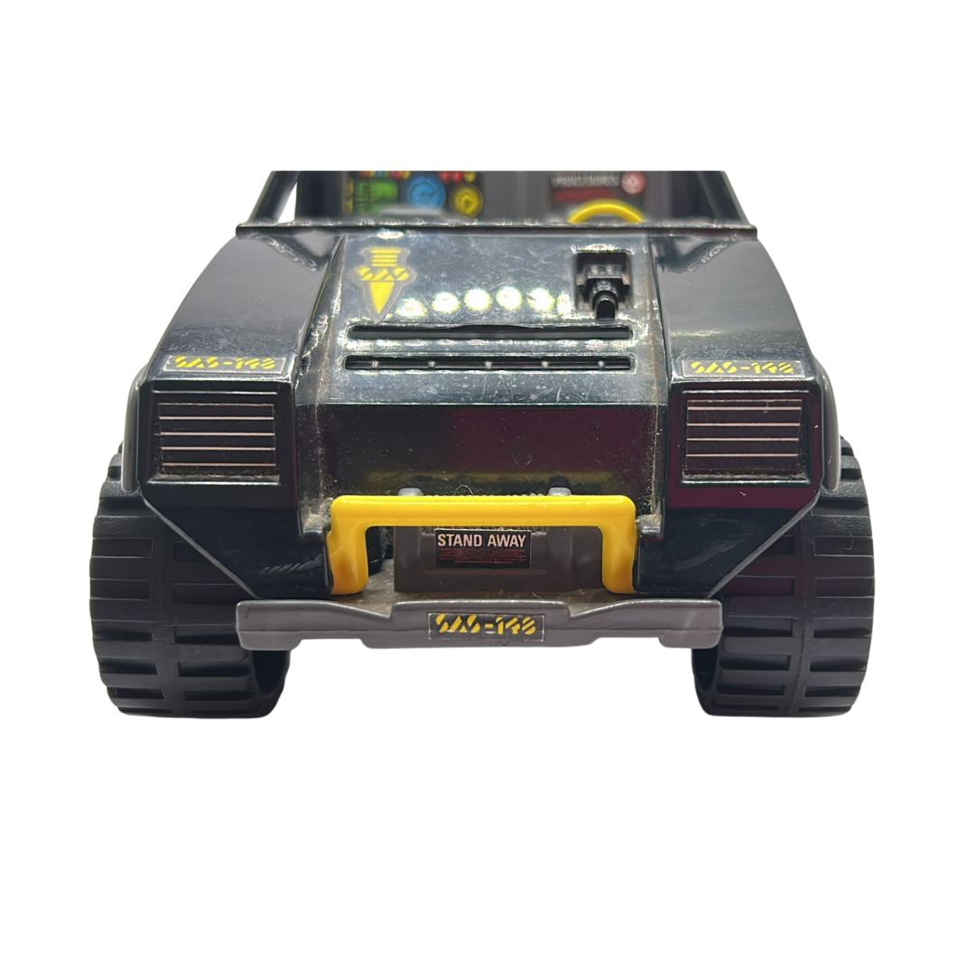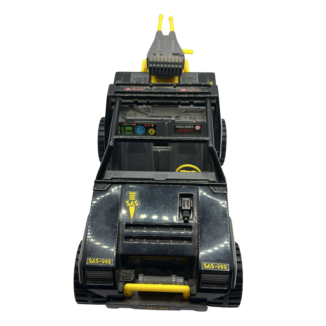 Action Force Panther & Stalker complete SAS vehicle with black roll cage. The vehicle comes complete with steering wheel, rear gun and both petrol cans. Stalker is in good condition as shown. He has his explosives satchel and damaged uzi (ammo clip has been removed). The Palitoy repaint of the GI Joe VAMP.